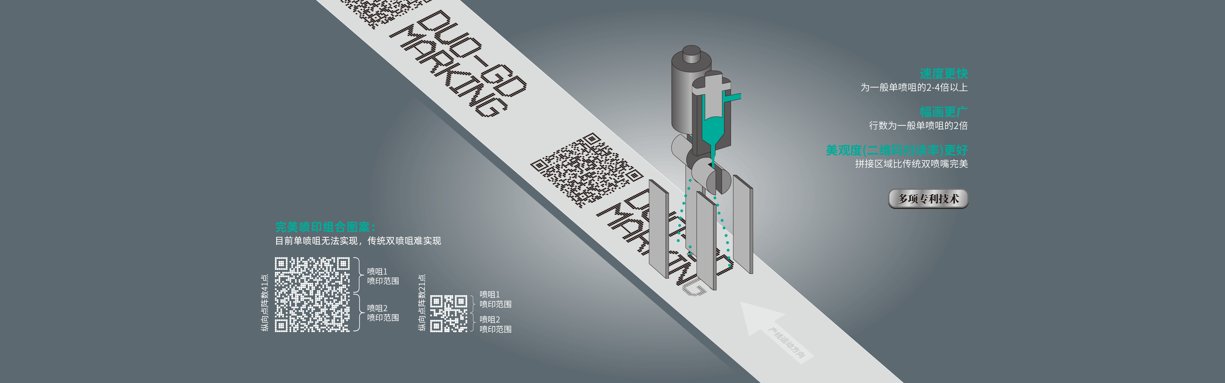 单个喷咀喷印行数越多(纵向点阵数越多),喷印速度及喷印质量呈指数性下降、二维码扫读率低。
