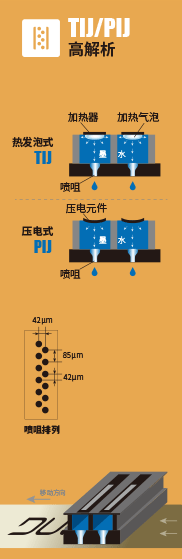 打印幅面与速度不会相互影响;产线动态稳定性影响打印美观度,承印材料适应性较窄;微孔微距无压力式喷印,打印头易损坏。在线式与手持式机型原理来源于桌面打印机。