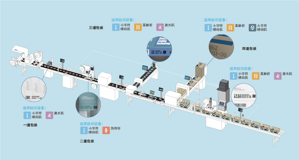 杜鸥公司最新的单/多喷头、单/双喷咀技术,使喷码机可以适用于生产的各个包装环节,而且效率大大提升、同时成本更低。