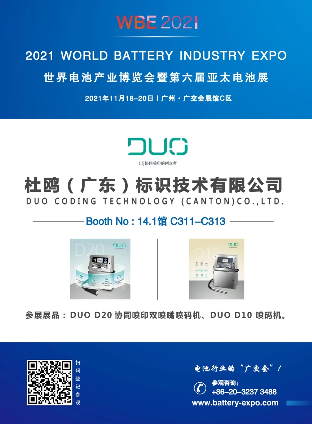 CIJ协同喷印的创立者-杜鸥标识诚邀您参观WBE2021世界电池产业博览会
